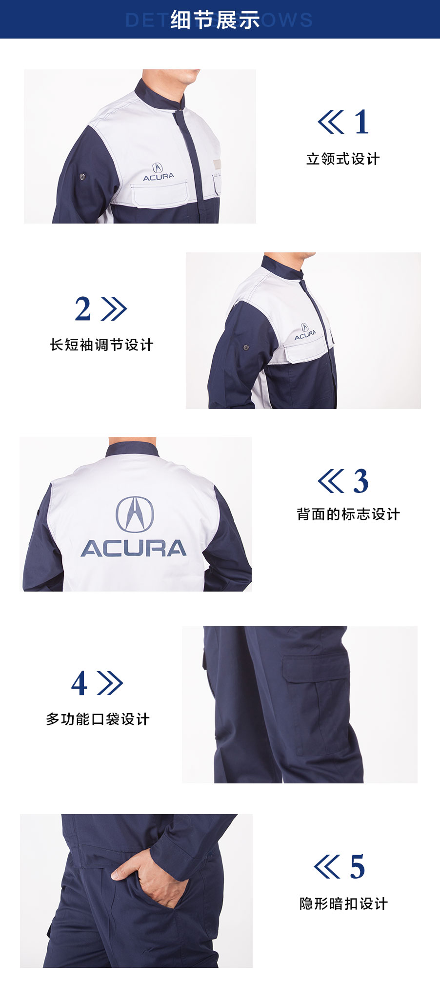 熱門關(guān)鍵詞:工作服 制服 汽修服 技師服 廠服 保安服 T恤 茄克 襯衫 男女西裝 箱包 帽子 工作鞋 馬夾 沖鋒衣 配飾